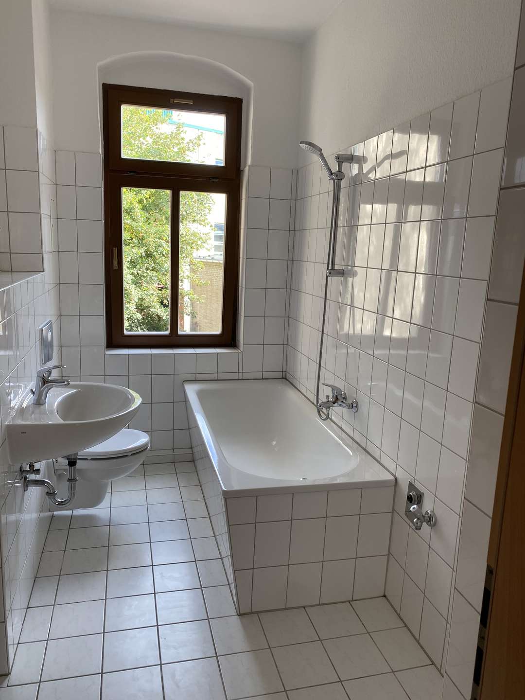 - Badausstattung: Badewanne, Fenster