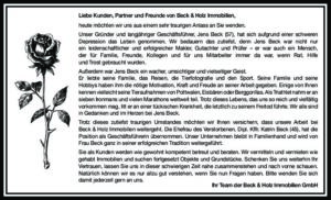 Traueranzeige-Jens-Beck Von admin-beck|2024-07-05T09:12:03+02:00Juli 5th, 2024|Kommentare deaktiviert für Traueranzeige-Jens-Beck Share This Story, Choose Your Platform! FacebookXRedditLinkedInWhatsAppTumblrPinterestVkE-Mail Über den Autor: admin-beck